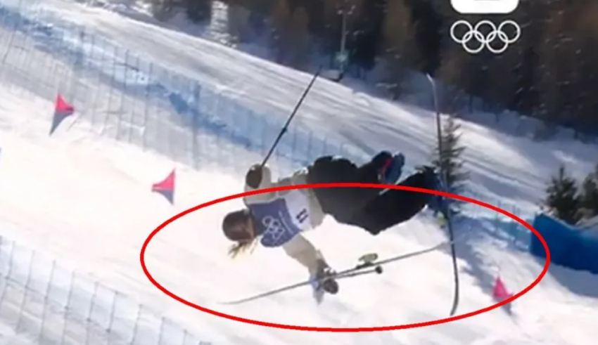 Takmičarka iz alpske zemlje, koja se bavi fristajl skijanjem, srećom nije zadobila ozbiljne povrede prilikom pada, iako je tokom skoka izgubila deo opreme – levu skiju.